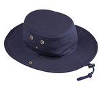 100% heavy cotton canvas; Fine mesh brass eyelets; Side snaps to wear brim up or down; Cotton chin strap with adjustable cord lock; Floatable: EVA foam insert; 2 1/2" brim;